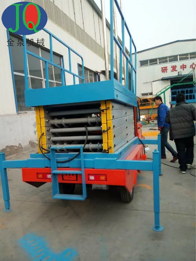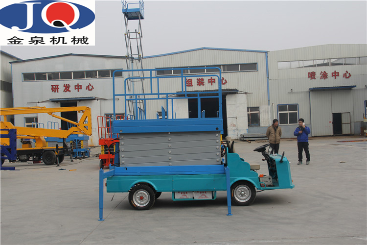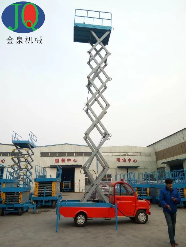 4、采用汽車、三輪車或電瓶車底盤做平臺(tái)底架,利用本車發(fā)動(dòng)機(jī)或直流電做動(dòng)力,既可行駛又可驅(qū)動(dòng)平臺(tái)升降。