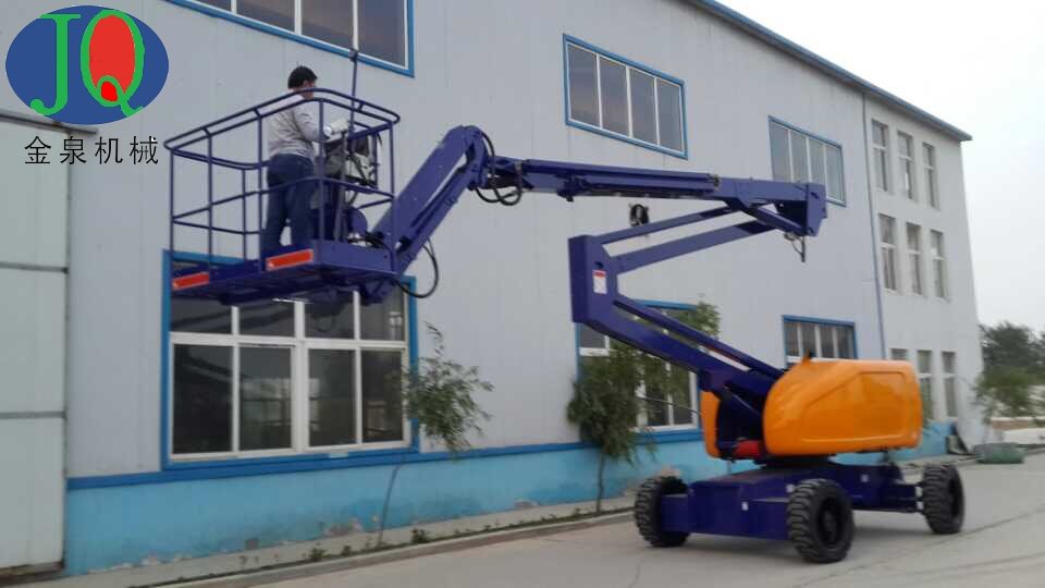 自行式折臂升降機(jī)主要用于需要跨越設(shè)備及其他安裝在地面的障礙物的維修作業(yè)。更加清潔和安靜得操作特點(diǎn)。設(shè)備由在標(biāo)準(zhǔn)電插座上可以再充電的高效能電池組提供動(dòng)力。所有型號(hào)可以全高度移動(dòng)。良好的操作性能,較窄的底盤(pán)寬度有利于設(shè)備進(jìn)入狹小的工業(yè)通道和擁擠的工作區(qū)域作業(yè)。