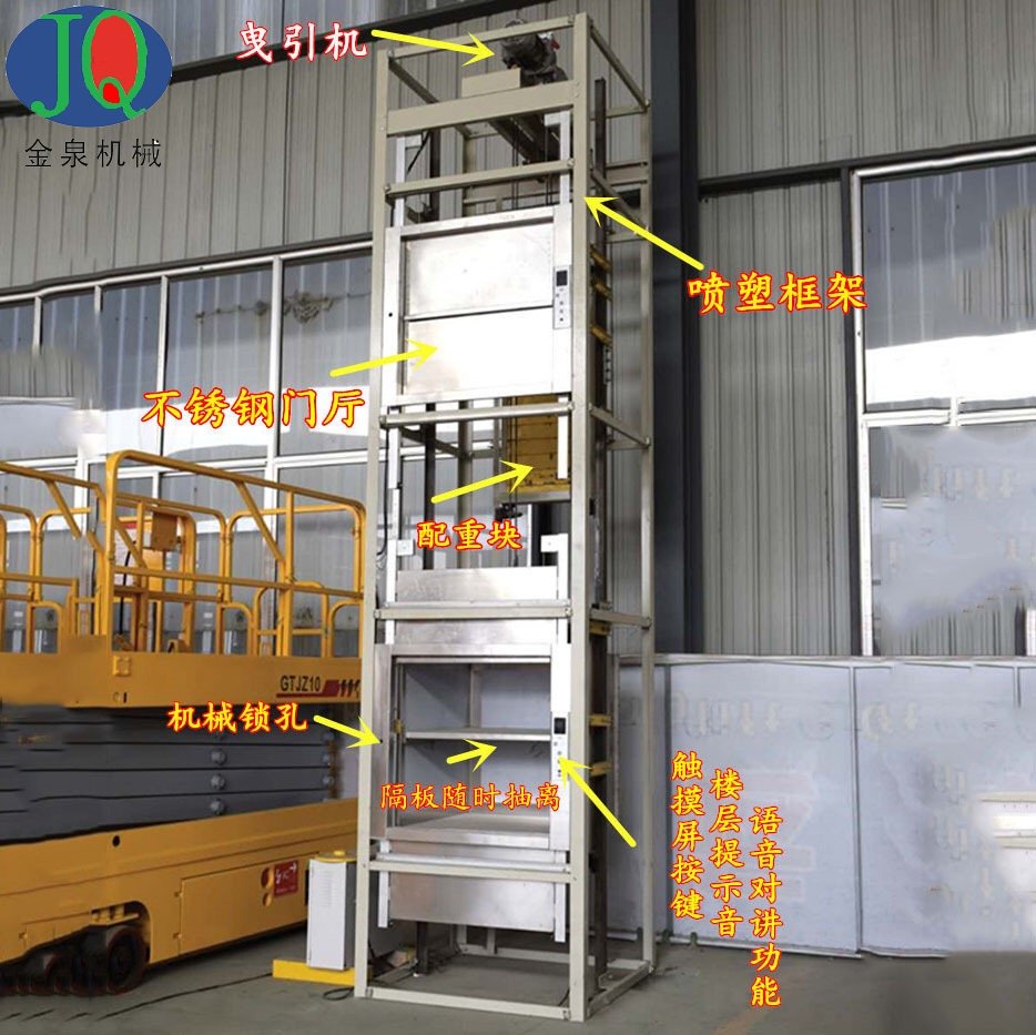 傳菜升降機是指用于賓館、廚房、食堂、飯店、 幼兒園、商廈、工廠等部門,用于傳送食品、餐具、日用品的電梯。傳菜升降機一般分為窗口式傳菜升降機和落地式(或地平式)傳菜升降機