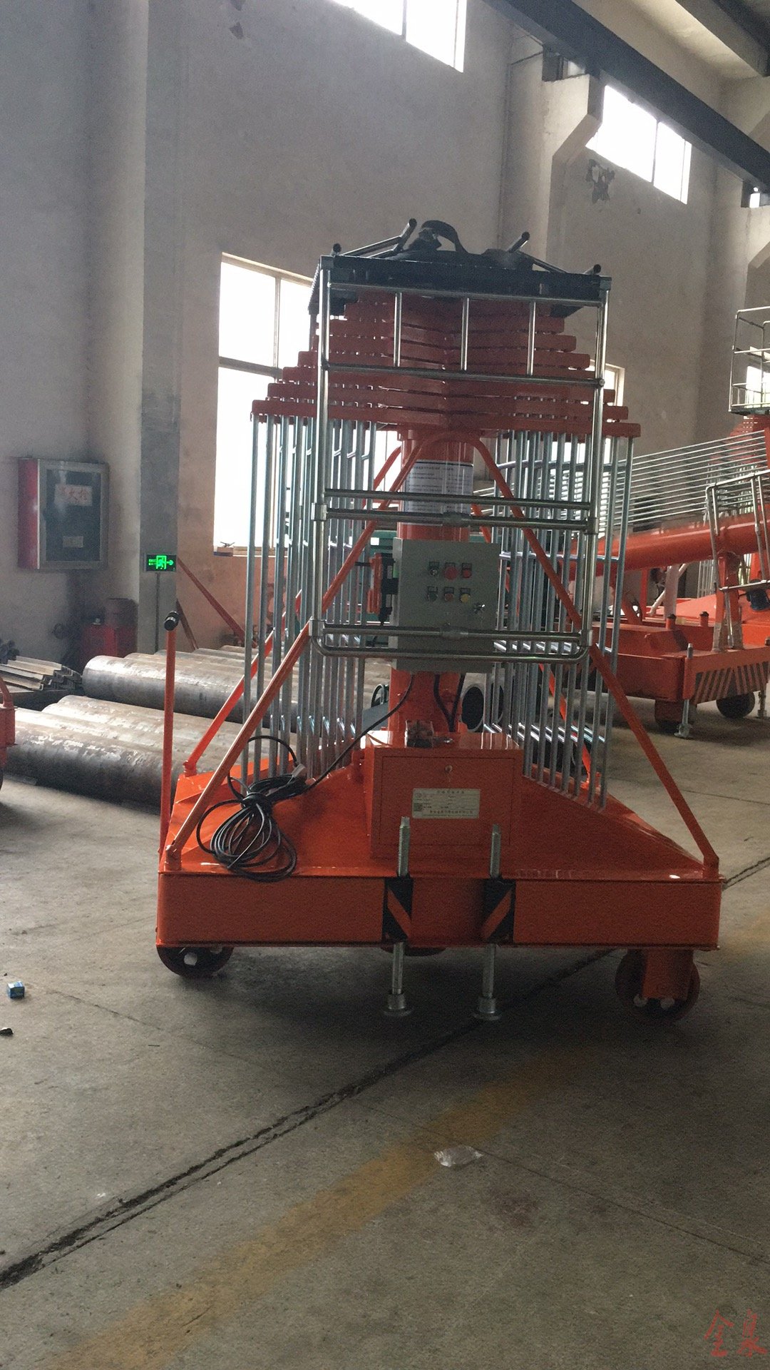 套缸式為多級(jí)液壓缸直立上升,液壓缸高強(qiáng)度的材質(zhì)和良好的機(jī)械性能,塔形梯狀護(hù)架,使升降臺(tái)有更高的穩(wěn)定性。即使身處20米高空,也能感受其優(yōu)越的平穩(wěn)性能。主要用于電力線路、照明電器、高架管道等安裝維護(hù),高空清潔等單人工作的高空作業(yè)。