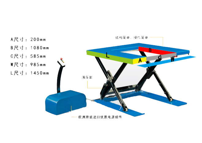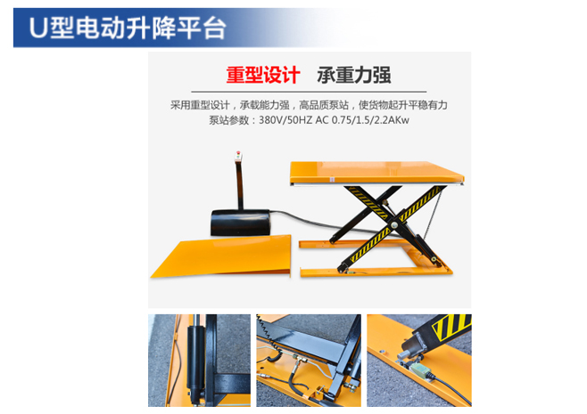▲ U型臺面,重型設計帶超長臺面,專用于托盤搬運,超低型臺面,不再需要建地下凹坑來安裝;