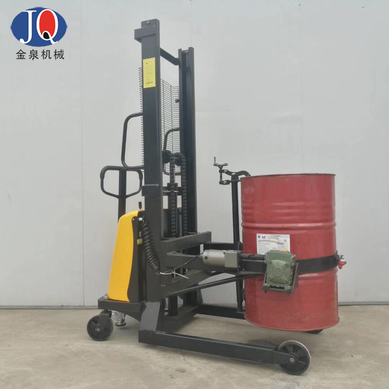 電動(dòng)油桶堆高車是一種利用先進(jìn)的液壓提升技術(shù)為依托,結(jié)合鏈條傳動(dòng)和反轉(zhuǎn)連桿機(jī)構(gòu)相配合,實(shí)現(xiàn)油桶(或類似油桶的桶狀器物)的升降及反轉(zhuǎn)動(dòng)作。