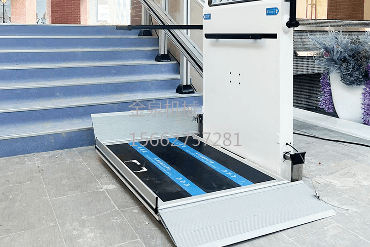 在使用斜掛升降機過程中,應(yīng)保持平臺水平穩(wěn)定,避免晃動,以確保殘疾人的安全。