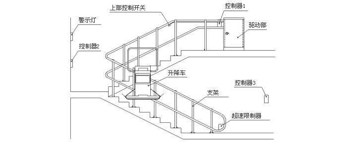 斜掛式輪椅升降機(jī),一種安裝在樓道系統(tǒng)利用電機(jī)牽引沿著軌道上下移動(dòng)并運(yùn)載乘客的無障礙安全裝置。它由驅(qū)動(dòng)系統(tǒng)、導(dǎo)軌、繩輪鏈、移動(dòng)平臺(tái)等組成。用于建筑樓道系統(tǒng)中,乘坐輪椅或爬樓梯困難的人員攀爬樓梯的專用設(shè)備。主要由主驅(qū)動(dòng)系統(tǒng),輔助驅(qū)動(dòng)系統(tǒng)、主控系統(tǒng)和安全系統(tǒng)組成。