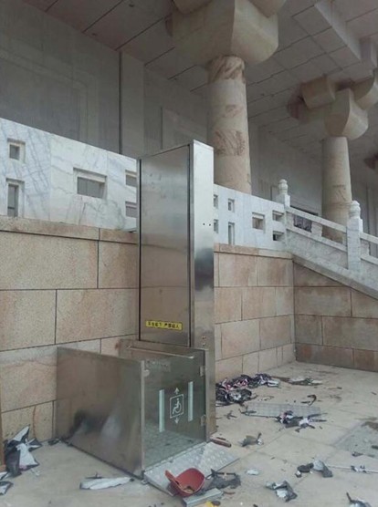 濟(jì)南金泉?dú)埣踩艘簤荷灯脚_又稱無障礙升降平臺,主要是由軌道和升降平臺板組成的,類似一個(gè)簡易的小電梯。軌道是鑲嵌在通道出入口的墻壁上的,隨著樓梯的坡度向下延伸,一直到地道內(nèi)部。而升降平臺在不使用時(shí)可以折疊靠著墻壁放置,這樣不會占用通道出入口處的空間。乘坐輪椅的殘疾人在使用時(shí),輪椅四個(gè)輪子可以被固定在臺板上,按動開關(guān)后就可以控制升降平臺進(jìn)入地下通道,安全方便。