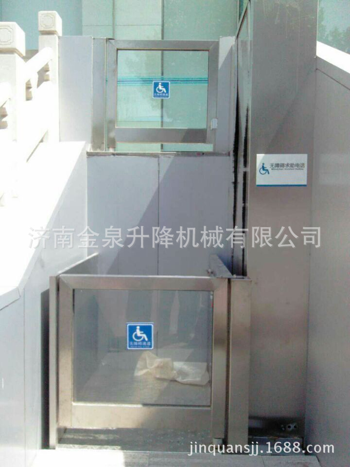 濟(jì)南金泉升降機(jī)械有限公司生產(chǎn)的無障礙殘疾人升降平臺由升降平臺、導(dǎo)軌和驅(qū)動箱等三大部分組成;升降平臺是由C型鋼材為主體部件,采用“翹板自復(fù)位開關(guān)操作運(yùn)行”, 無基坑式安裝,直接固定于混凝土地面(無底坑室外應(yīng)用情況下,平臺下方混凝土地面不得低于周圍地面) ,手動液壓閥打開時(shí)升降底板能手動下降;液壓驅(qū)動,升降平穩(wěn)安全,外部采用拉絲不銹鋼材料和鋁板靜電噴塑機(jī)箱/面板,外形小巧美觀,不阻礙周邊環(huán)境。殘疾人升降機(jī)直接安裝于地面,無需土建配套地坑,施工簡便,產(chǎn)品放置戶外不易積水,不易生銹,維護(hù)簡便。升降高度1-12米!根據(jù)客戶升高高度量身定制,歡迎大家來電咨詢。金泉機(jī)械