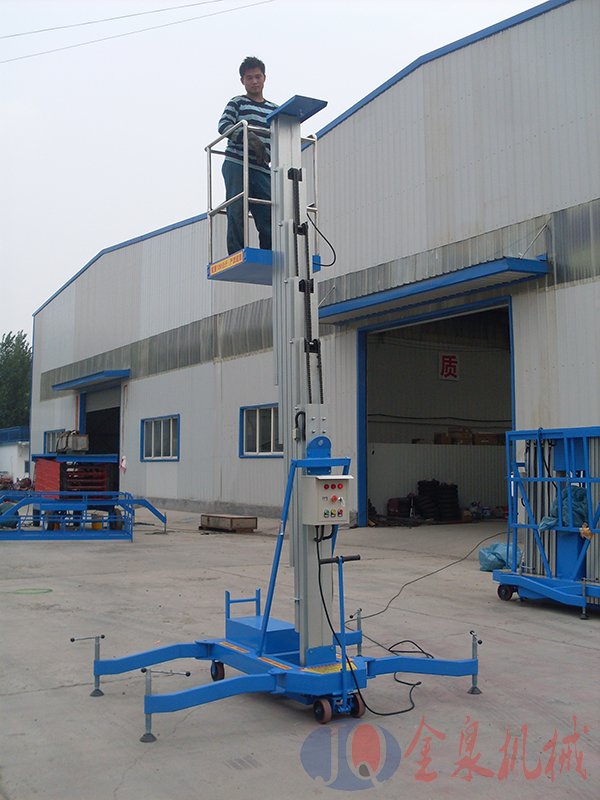 單柱鋁合金升降機(jī):該系列產(chǎn)品為室內(nèi)型,廣泛適用于星級(jí)酒店,大型超市等各行業(yè)大廳、廠房?jī)?nèi)的高空作業(yè),具有升降平衡,操作方便,能進(jìn)入一般門廳,可隨意進(jìn)出電梯且耗電少、無污染、工作時(shí)不傷地面,可用于貼墻工作及探出作業(yè),工作無死角。單立柱式鋁合金電動(dòng)升降機(jī)配上龍門跨架附件,非常適合于影劇院、會(huì)堂、教堂等的維修工作。