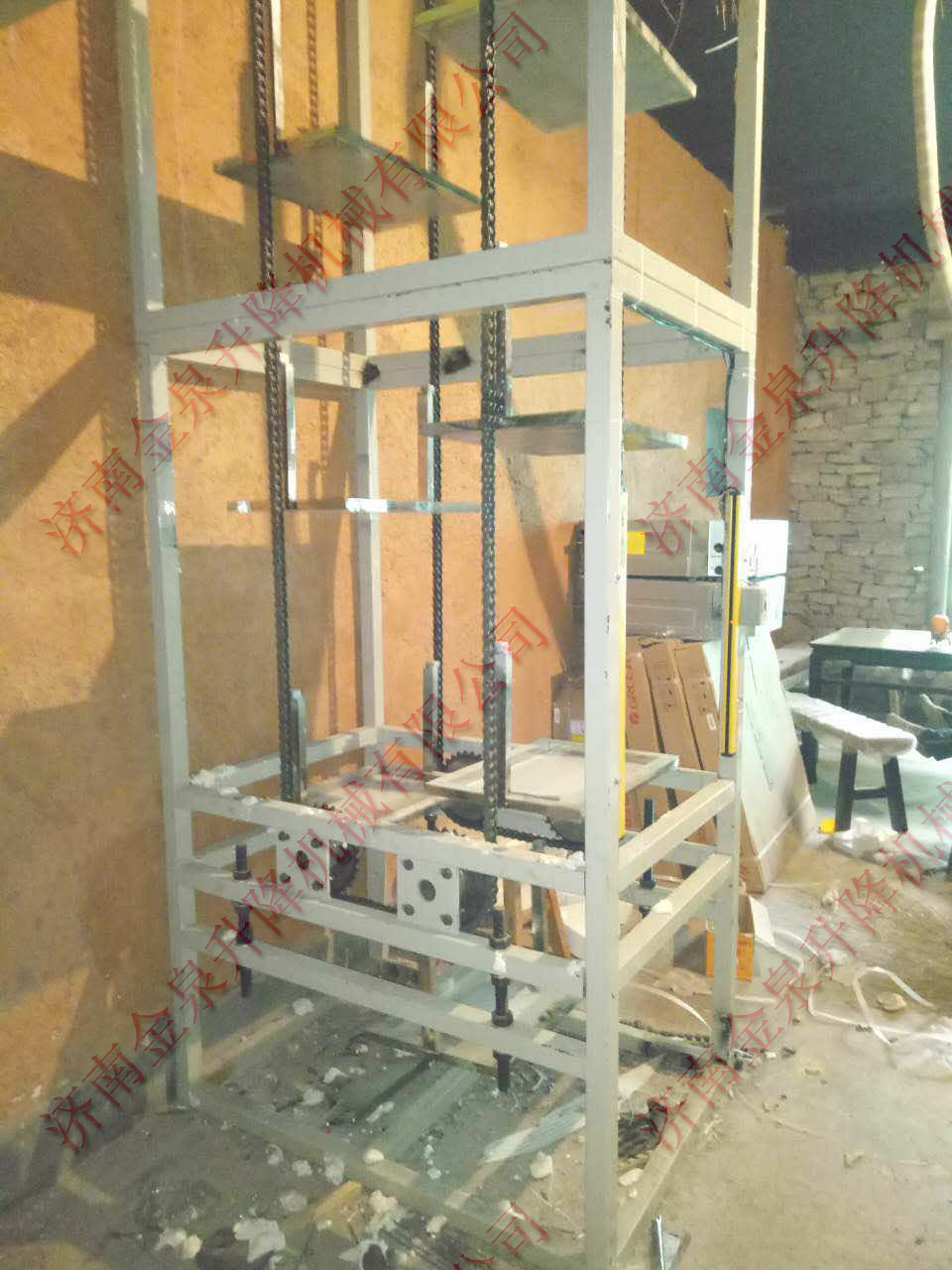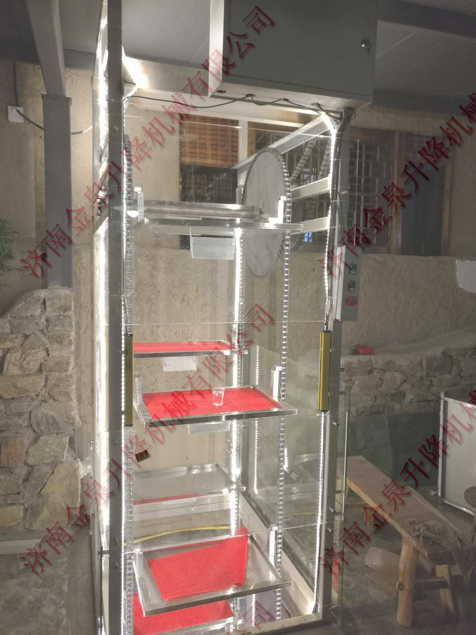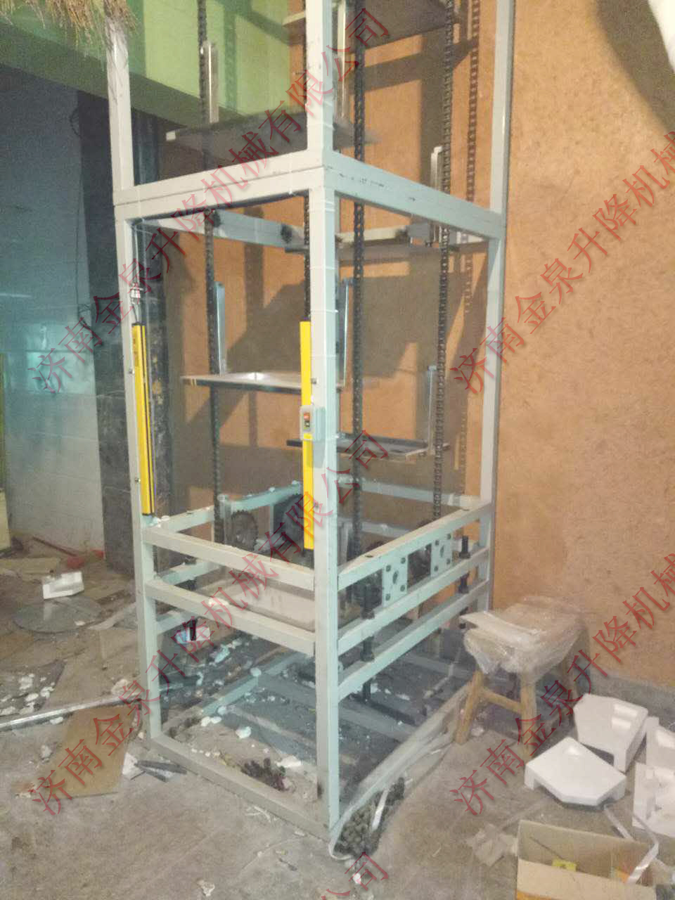 2.垂直液壓提升機:采用液壓做為驅(qū)動,速度比雜物電梯稍慢