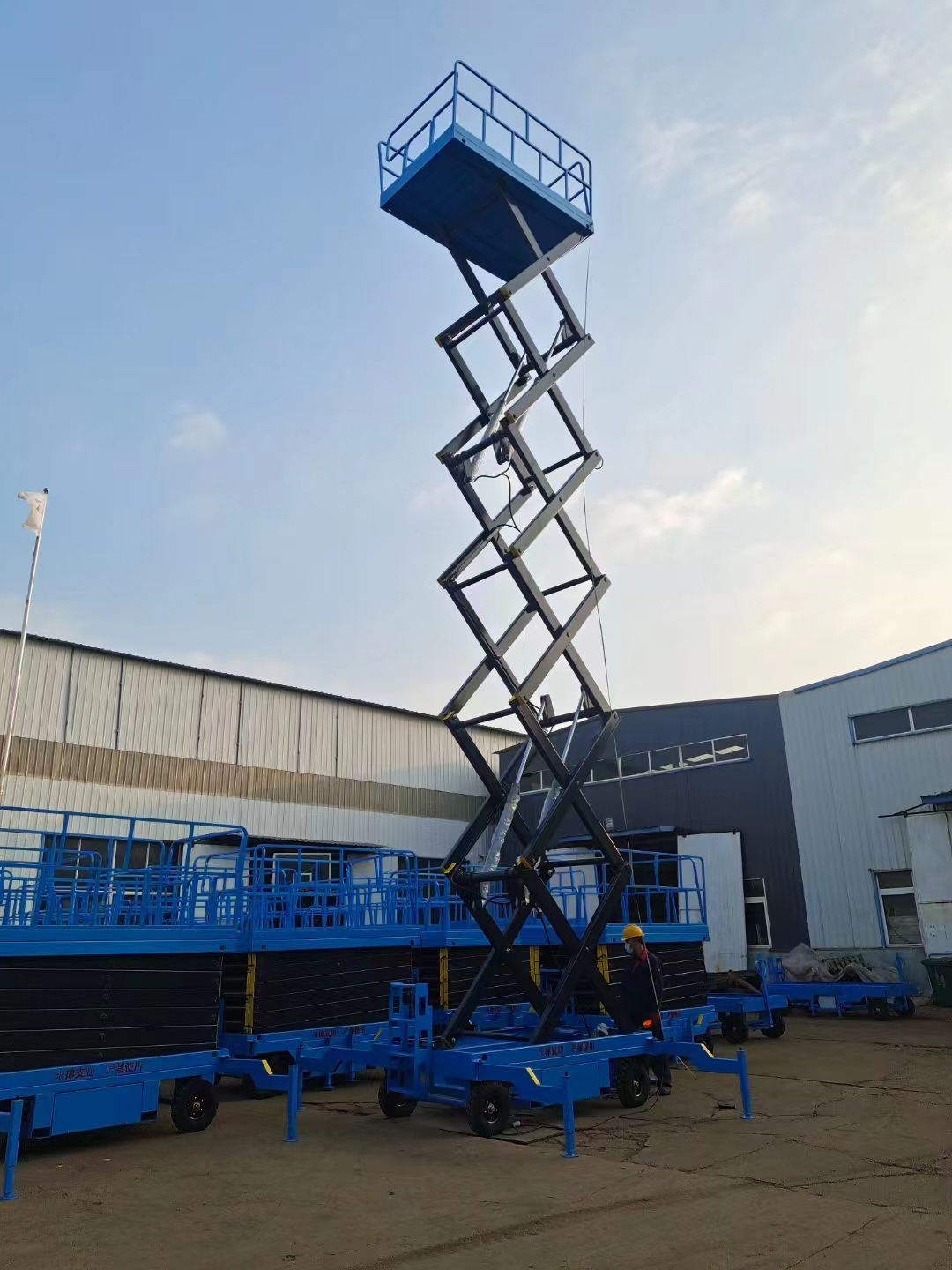 用防爆電器等。該升降機(jī)控制方式為電動上、下控制升降,手、電兩用或遙控器控制,在停電時仍可使用。該系列升降機(jī)具有移動靈活,升降平穩(wěn),載重量大,操作方便等特點,移動升降機(jī)廣泛用于工廠、糧庫、機(jī)場、加油站、機(jī)關(guān)、碼頭、野外電力、路燈維護(hù)及建筑裝修等各種行業(yè)。移動升降機(jī)可根據(jù)用戶使用要求設(shè)計制造。